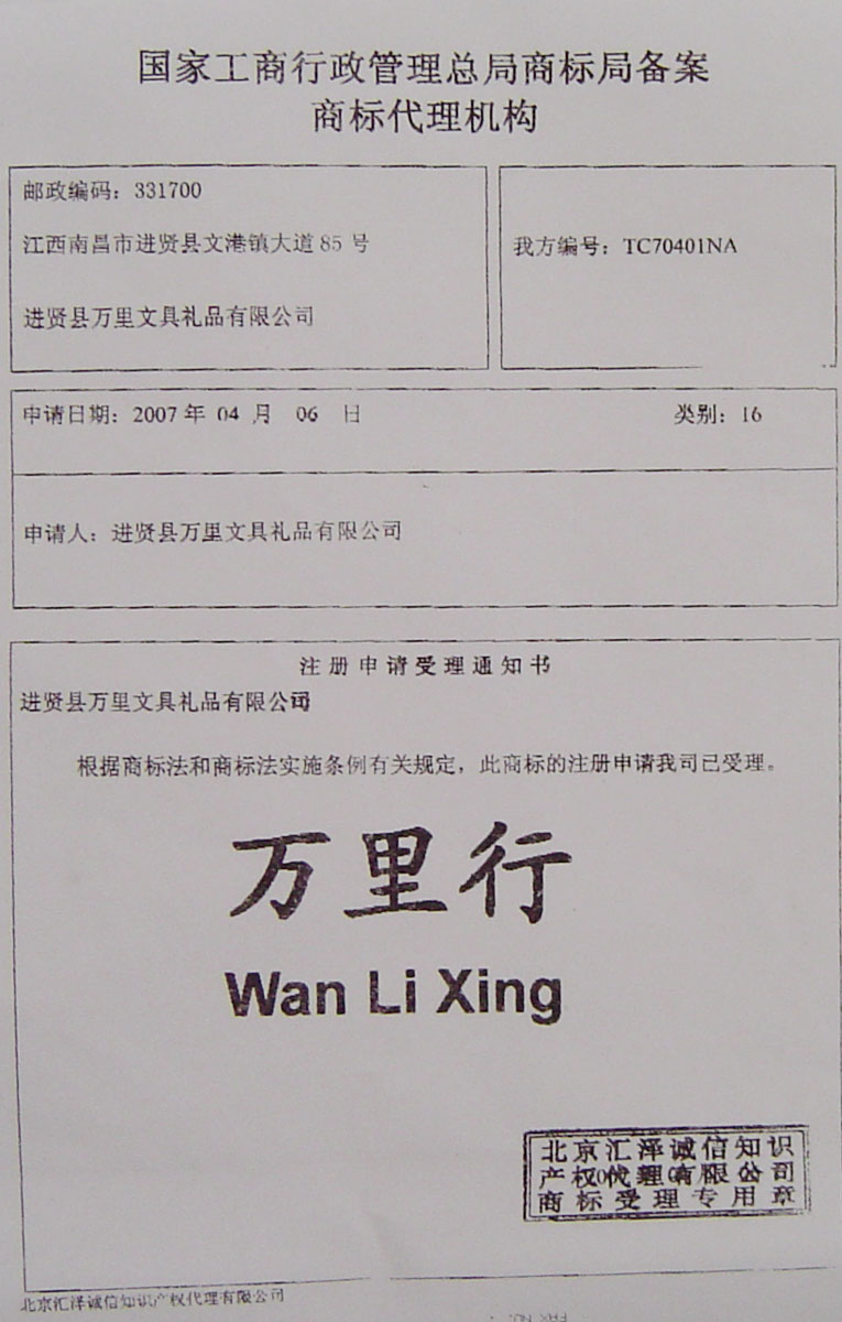 您的当前位置: 首页 > 商标信息 > 第16类 > 万里行